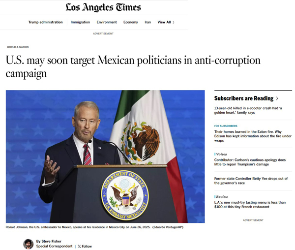 La versión en inglés de la nota de Steve Fisher en Los Ángeles Times sobre la corrupción de MORENA