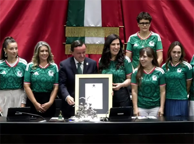Diputado Israel Moreno y ex Futbolista Manuel Negrete develan monumental mural del Mundial de México 2026