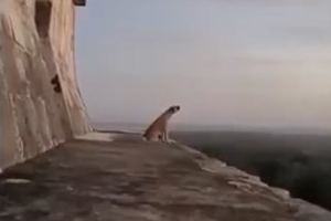 Perrito callejero sube a la cima de la pirámide de Chichen Itza y llora al atardecer