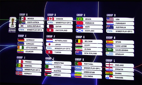 Tras 2 horas y media de show, quedaron dispuestos los grupos de la primera fase del torneo que se llevará a cabo entre México, Canadá y Estados Unidos, que a decir verdad los tres anfitriones no deberán tener problemas para acceder a los dieciseisavos de final o segunda ronda, pues le tocaron rivales relativamente a modo. De hecho, esta Copa del Mundo, con 48 equipos, una cuarta parte de todos los países existentes en el planeta, en su primera fase no promete muchas emociones pues gracias a la apertura de equipos finalistas muchos conjuntos que habitualmente no se clasificaban, como son los casos de Jordania, Curazao, Qatar, Haiti, Cabo Verde o Uzbekistán. Los grupos quedaron de la siguiente forma: