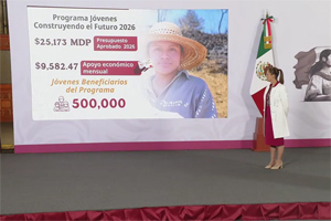 “Un billón de pesos, 2026, este año, dedicado a las y los mexicanos con el principio de la Cuarta Transformación, por el bien de todos, primero los pobres y la garantía de los derechos del pueblo de México, el derecho a la educación, el derecho a la salud, el acceso a la vivienda, y los Programas del Bienestar”, destacó en la conferencia matutina: “Las mañaneras del pueblo”. Este año, expuso, se implementarán dos nuevos apoyos: uno para útiles y uniformes de niñas y niños de primaria; y uno de transporte para estudiantes de Educación Superior en el marco del Plan Michoacán por la Paz y la Justicia. “Ahora hay una beca única especial para útiles y uniformes para todos los niños y niñas de primaria y la beca Gertrudis Bocanegra que en este momento es para los jóvenes de Michoacán que estudian en Educación Superior, que es para transporte y el objetivo es poco a poco ir creciendo esta beca para los jóvenes de educación superior”, detalló. El secretario técnico del Gabinete de la Presidencia y coordinador general de Programas para el Bienestar, Carlos Torres Rosas, puntualizó que en 2026, con el incremento a un billón tres mil 326 pesos, se beneficiará a 42.9 millones derechohabientes, incorporando a 10 millones de personas, incluyendo a siete millones de familias con estudiantes de primaria. Puntualizó que los Programas para el Bienestar en su conjunto son el corazón de la política social del Gobierno de México y son la base de la Cuarta Transformación, porque colocan en el centro a las personas, reconocen derechos y transforman vidas, enfatizó. La secretaria de Bienestar, Ariadna Montiel Reyes, informó que en 2025 las Pensiones y Programas para el Bienestar cerraron con un padrón de cerca de 18 millones y medio de derechohabientes, con una inversión social de 579 mil 304 millones de pesos (mdp) y la meta al final de 2026 es que se llegue a 20.3 millones de beneficiarios, a través de una inversión de 663 mil 719 mdp. Agregó que, a partir del primer bimestre de 2026, incrementa el monto de las Pensiones y Programas de Bienestar: La Pensión Mujeres Bienestar aumenta a 3 mil 100 pesos bimestrales; para Adultos Mayores a 6 mil 400 pesos, y para Personas con Discapacidad es de 3 mil 300 pesos cada dos meses. Asimismo, continúan y se fortalecen los programas para Madres Trabajadoras, que otorgan mil 650 pesos bimestrales y Sembrando Vida, 6 mil 450 pesos mensuales. Además, anunció que el primer pago se realiza desde hoy 5 de enero y se dispersará de acuerdo con el siguiente calendario: Lunes 5 de enero–A Martes 6 de enero–B Miércoles 7 y jueves 8 de enero–C Viernes 9 de enero–D, E, F Lunes 12 y martes 13 de enero–G Miércoles 14 de enero–H, I, J, K Jueves 15 de enero–L Viernes 16 y lunes 19 de enero–M Martes 20 de enero–N, Ñ, O Miércoles 21 de enero–P, Q Jueves 22 y viernes 23 de enero–R Lunes 26 de enero–S Martes 27 de enero–T, U, V Miércoles 28 de enero–W, X, Y, Z La directora general del programa “La Escuela es Nuestra", Pamela López Ruiz, explicó que para este año este programa tiene un monto asignado de 26 mil mdp para beneficiar a 9.5 millones de estudiantes de 78 mil 923 escuelas, de las que 72 mil 831 son de Educación Básica y 6 mil 92 de Media Superior. Dio a conocer que, de enero a marzo, los Servidores de la Nación visitarán las escuelas para realizar las asambleas, de abril a mayo se hará la entrega de tarjetas y en mayo se realizará el pago correspondiente. El coordinador nacional de Becas para el Bienestar, Julio César León Trujillo, refirió que al cierre de 2025 se becó a 13.3 millones de estudiantes, mientras que, en 2026 los beneficiarios incrementarán a 22.8 millones, lo que representa un aumento de 216 por ciento. Además, anunció que habrá una nueva beca de apoyo para uniformes y útiles para educación primaria, se trata de un apoyo único anual de 2 mil 500 pesos por estudiante, será para todos los grados de primero a sexto y las asambleas iniciarán en febrero. También destacó que hoy 5 de enero comienza la entrega de un millón 53 mil 215 tarjetas de la beca Rita Cetina para secundaria y en el marco del Plan Michoacán, en febrero comenzará la entrega de tarjetas de la beca de apoyo a transporte Gertrudis Bocanegra. El secretario del Trabajo y Previsión Social, Marath Baruch Bolaños López, informó que en 2026 el programa Jóvenes Construyendo el Futuro tiene un presupuesto aprobado de 25 mil 173 mdp, con lo que se otorgará un apoyo económico mensual de 9 mil 582.47 pesos a 500 mil beneficiarios. Anunció que 45 mil jóvenes inician capacitaciones este mes y recibirán su primer pago el 28 de enero, también informó que la próxima convocatoria será el 1 de febrero y habrá 36 mil nuevos espacios.