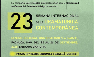 “Es un evento que iniciamos en 2002 entre el Teatro La Capilla y el Centro Cultural Helénico. Las primeras siete ediciones fueron en la Ciudad de México. Después, lo llevamos a Monterrey, Guadalajara, Tijuana, Toluca y Cuernavaca. Ahora toca Pachuca, lo que me parece fundamental para ampliar públicos y acercar la dramaturgia contemporánea a nuevas comunidades teatrales”, explica en entrevista Boris Schoemann, creador escénico, director de la compañía Los Endebles y responsable del evento. Para Schoemann, el valor del encuentro está en el intercambio de poéticas diversas, más que en imponer una línea curatorial única: “La idea es mostrar lo que se está escribiendo hoy. Cada autor trae sus preocupaciones, su estética, su manera de concebir el teatro, y lo enriquecedor es poner esas voces en diálogo: las mexicanas con las internacionales, las jóvenes con las de trayectoria consolidada”. Uno de los ejes principales es que las lecturas dramatizadas se producen con elencos y directores locales: “No es un festival que traiga espectáculos listos, sino que se crean lecturas con los equipos de la ciudad sede. Este año, diez directores de Pachuca con sus actores preparan los textos seleccionados. Yo asesoro a distancia y luego en sala, para que las y los dramaturgos puedan reconocer su obra en voces nuevas y el público local se apropie del proceso. Lo más estimulante es ver que, dos o tres años después, muchas de esas lecturas terminan en montajes completos”, señala. En el presente año, la SIDC es beneficiaria del Apoyo a Festivales Culturales y Artísticos (PROFEST), y cuenta con la participación de figuras consolidadas como Perla de la Rosa, Luis Ayhllón y Enrique Olmos de Ita, junto con voces emergentes como Laura Esperanza, Marcelo Treviño, Verónica Villicaña y Jimena Eme Vázquez. El diálogo internacional estará a cargo de Carolina Vivas (Colombia), reconocida por su trabajo en creación colectiva, y Rébecca Déraspe (Canadá), una de las autoras más influyentes de la dramaturgia canadiense actual. “La dramaturgia mexicana vive un momento de gran diversidad. Hay autoficción, hay escritura testimonial, hay experimentación formal. Y al ponerla en conversación con voces como las de Colombia o Quebec descubrimos que los problemas son similares, tales como la violencia, la desigualdad, las tensiones de género, pero las formas de escribirlos son distintas. Eso abre nuevas miradas y es lo que queremos compartir con estudiantes, con actores, con todo público que se acerque”, destaca Schoemann. El director de escena también reflexiona sobre los retos de las artes escénicas en la actualidad. “Llegar a 23 ediciones es ya una declaración de resistencia. El teatro sigue siendo la materia prima de otras artes: un buen guion se convierte en obra, en película, en serie. Por eso es fundamental seguir creando, difundiendo y leyendo dramaturgia contemporánea”. Una semana de teatro en Pachuca El programa se concentrará del 22 al 26 de septiembre de 2025, en el Centro Cultural Universitario “La Garza”. La inauguración será el lunes 22 a las 10 h, con un mensaje de María Teresa Paulín y Boris Schoemann, seguida de la mesa “Dramaturgia hidalguense”. Más tarde se presentarán las primeras lecturas: Nayra y el mundo de las sombras, de Laura Esperanza, y Los hielos, de Rébecca Déraspe. El martes 23 se realizará el “Concurso de Dramaturgia Exprés”, abierto a la comunidad. Después, la dramaturga Carolina Vivas impartirá la primera sesión del taller “Cruzando el límite”, que se enfoca a la creación colectiva. Mientras que las lecturas dramatizadas incluirán Borges no estaba ciego, de Enrique Olmos de Ita, y La que no fue, de la propia Vivas. Al día siguiente, miércoles 24, se llevarán a cabo encuentros de reflexión, entre ellos “Enseñar dramaturgia”, con Jimena Eme Vázquez y Verónica Villicaña, y la presentación del Planisferio del teatro mexicano contemporáneo, de Olmos de Ita. En la tarde, se leerán Después de Peter, de Marcelo Treviño, y Aves de Troya, de Villicaña. El jueves 25 ocurre el taller “Creación dramática para teatro y cine”, a cargo de Luis Ayhllón, le siguen encuentros con dramaturgos invitados. Las lecturas vespertinas serán Juana y la modelo pasajera. de Ayhllón, y Versus Nina, de Jimena Eme Vázquez. Para cerrar, el viernes 26 se celebrará la mesa “Teatro y poder”, con la participación de Déraspe, Vivas, De la Rosa y Ayhllón. En la tarde se presentarán A la orilla del río, de Perla de la Rosa, así como la obra que resulte elegida en el Concurso de Dramaturgia Exprés, y como cierre, la puesta en escena Hamlet 3.5, escrita y dirigida por María Teresa Paulín. Todas las actividades son gratuitas y se transmitirán en línea a través de los canales de Los Endebles / Teatro La Capilla, lo que extenderá la programación más allá de Pachuca. Para conocer más se puede consultar el sitio web https://www.teatrolacapilla.com/