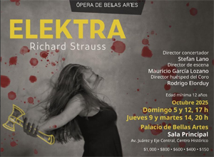 En conferencia de prensa, en la Sala Manuel M. Ponce del Palacio de Bellas Artes, la subdirectora general de Bellas Artes, Haydeé Boetto Bárcena, indicó que las funciones, con la participación de la Orquesta y el Coro del Teatro de Bellas Artes, se llevarán a cabo en la Sala Principal del recinto los días 5, 9, 12 y 14 de octubre de 2025, para su posterior presentación el viernes 24 y el sábado 25 del mismo mes en el Teatro Juárez, en el marco del 53 FIC. “Su presencia reafirma el compromiso del INBAL con la excelencia artística y el esfuerzo institucional por ampliar la oferta cultural y rinde homenaje a la tradición operística de México que ha sabido mantener un diálogo constante con las grandes obras del mundo”, aseguró Boetto sobre la puesta en escena, que se presentó por primera vez en el Palacio de Bellas Artes en septiembre de 1970 y volvió a montarse en 1993, por lo que la nueva temporada significa su retorno luego de más de tres décadas. Acompañada por el director artístico de la CNO, Marcelo Lombardero; el director concertador, Stefan Lano; el director de escena, Mauricio García Lozano, y las actrices Catherine Hunold y Diana Lamar, Boetto Bárcena informó que en la 53 edición del Festival Internacional Cervantino (FIC), Elektra marca el regreso de los grandes montajes de ópera al FIC. Lombardero detalló que el elenco lo encabezarán Hunold y Lamar, quienes alternan en el rol titular, acompañadas por Dhyana Arom y María Fernanda Castillo como Crisótemis; Josué Cerón y Oscar Velázquez alternando como Orestes; y Belem Rodríguez y Rosa Muñoz en el papel de Clitemnestra. Completan el reparto Elizabeth Mata como la confidente, Diana Mata como el paje, Chac Barrera y Arturo López Castillo como los sirvientes, David Echeverría en el rol de su tutor, Carlos Arturo Galván y Gilberto Amaro como Egisto, Lucía Salas como la celadora, y las doncellas estarán a cargo de Vanessa Jara, Araceli Fernández, Mariana Sofía, Hildelisa Hangis y Angélica Alejandre. La pieza “requiere de especialistas, de cantantes que tengan una gran ductilidad teatral, pero además una capacidad técnica y vocal muy especial. Elektra es una obra que además de tener una gran intensidad dramática, requiere también una orquesta muy nutrida, quizá la orquesta más grande concebida para un foso, y eso hace que las voces deban tener una proyección particular”, señaló Lombardero. Elektra es una ópera en un acto que marcó un momento decisivo en la transformación de la ópera moderna, pues con libreto en alemán de Hugo von Hofmannsthal, basado en la tragedia de Sófocles, la obra explora la intensidad de las pasiones humanas a través de un lenguaje musical innovador y de gran expresividad dramática. Estrenada en 1909, la pieza –conocida por su complejidad interpretativa– explora la venganza y la locura como elementos que se entrelazan en una historia familiar marcada por el crimen y el dolor que se refleja en la fuerza de la música. Richard Strauss (1864-1949), considerado uno de los grandes compositores del posromanticismo y la modernidad temprana, encontró en Elektra un terreno fértil para explorar los límites de la expresión musical, y su partitura exige un despliegue orquestal y vocal de gran potencia, convirtiéndose en un desafío artístico para intérpretes y directores. Para hacer esto posible, en esta ocasión, la dirección concertadora estará a cargo de Stefan Lano, con la dirección de escena de Mauricio García Lozano. El equipo creativo incluye a Jorge Ballina en escenografía, Ingrid SAC en iluminación, Jerildy Bosch en vestuario, Maricela Estrada en maquillaje y peinados, y Vivian Cruz, miembro del Sistema Nacional de Creadores de Arte, en la coreografía. En el caso de la escena, Mauricio García Lozano aseguró que decidió enfocarse en una dirección elektrocentrista, “lo que me gustaría es que el público pudiera tener una experiencia como la que Elektra está teniendo, que es un estado de compulsión y quizá de obsesión, al borde de la alucinación. Entonces la puesta en escena quiere ser un poquito alucinatoria”. Con una duración de menos de dos horas, las funciones en el Palacio de Bellas Artes se realizarán el domingo 5 y 12 a las 17 h, y el jueves 9 y martes 14 de octubre a las 20 h, en la Sala Principal. La ópera se presentará en alemán con supertitulaje en español. La misma producción viajará al Teatro Juárez de Guanajuato para dos funciones, el viernes 24 y sábado 25 de octubre a las 21 h, durante la 53 edición del Cervantino.