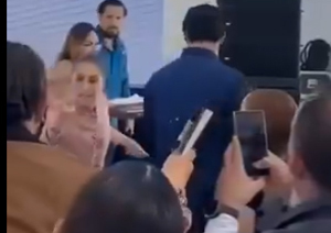 La gobernadora de Chihuahua en gira a Ciudad Juárez cae en un "bache del bienestar" de administración de MORENA