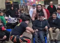 En una función de lucha libre, los luchadores hacen participar a un joven parapléjico emocionado