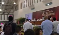 Los maestros abuchean a la gobernadora de Veracruz y al secretario de Educación, se les olvidó los reconocimientos