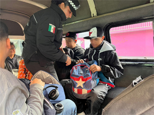 De manera aleatoria en el municipio de Nezahualcóyotl, los guardias nacionales solicitan a los operadores de las unidades detener su marcha para efectuar revisiones preventivas a los pasajeros, a fin de inhibir la portación de armas u objetos que puedan ser utilizados para la comisión de algún delito. En apego al modelo de proximidad social, el personal de la Guardia Nacional se identifica con los pasajeros y solicita autorización para realizar la revisión de pertenencias, además de invitarlos a utilizar el número telefónico 088 de atención ciudadana. Asimismo, a conductores de camiones, microbuses, camionetas o taxis se les entrevista, con el objeto de verificar que no conduzcan bajo los efectos del alcohol o de alguna droga, recordandoles algunas disposiciones del Reglamento de Tránsito, a fin de evitar accidentes que pongan en riesgo la integridad de los ciudadanos. La Guardia Nacional refrenda su compromiso de velar por el bienestar de los usuarios del transporte público y contribuyen con el Gobierno de México, para garantizar la paz y la seguridad de la población.