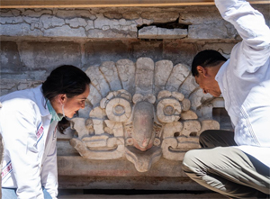 La secretaria Curiel refrendó el compromiso del Gobierno de México con las comunidades, para el cuidado, conservación y difusión del patrimonio: “Se están haciendo trabajos de estabilización para abrirlo al público a finales del año”. Y agregó: “Es uno de los hallazgos más importantes de la cultura zapoteca, pilar del desarrollo cultural y civilizatorio de nuestro país, que alcanzó un alto grado de sofisticación; por el estado de conservación en el que se encuentra y por la información que nos va a arrojar de la cosmogonía de este pueblo. “De acuerdo con el INAH, dada la cercanía entre la Tumba 5, descubierta en 1985, y la Tumba 10, se considera que el área en la que ambas se encuentran fue una acrópolis contemporánea a Monte Albán, la gran capital zapoteca de su época”. Por su parte, el mandatario estatal recordó que fue la Presidenta de México, Claudia Sheinbaum Pardo, quien anunció al mundo la Tumba 10 en San Pablo Huitzo. “Este sitio es algo maravilloso. Encontrar vestigios tan hermosos, de más de 1,600 años, es algo único”. El director general del Instituto Nacional de Antropología e Historia (INAH), Omar Vázquez Herrera, y la arqueóloga Cira Martínez López, guiaron el recorrido de las autoridades por el Cerro de la Cantera, en cuya cima se localiza la Tumba 10, sitio en el que se internaron para reconocer su extraordinaria arquitectura y decoración. En este contexto, la presidenta municipal de San Pablo Huitzo, Verónica Reyes López, afirmó que “Huitzo está contentísimo y agradecido por todo el apoyo”. Desde el año pasado, especialistas del Centro INAH Oaxaca laboran en el sitio. Los arqueólogos Jorge Bautista Hernández y Gabriela Galicia Moreno localizaron un pozo que conducía a una cripta de bóveda escalonada, hecha con losas de calizas y cantera gris, recubiertas de estuco, la cual mide 5.55 metros de longitud, entre 1.66 y 2.79 metros de ancho, y una altura que varía de 1.68 a 2.60 metros. Las restauradoras Fanny Magaña Nieto y Cristian Hernández Ortega están a cargo de la estabilización de la pintura mural, la cual presenta un estado de conservación delicado. De forma paralela, están en marcha análisis cerámicos de las vasijas que se hallaron fuera de la cámara, e iconográficos y epigráficos para descifrar los significados del mascarón, friso, jambas y murales. Asimismo, se realizan estudios de antropología física en los escasos fragmentos óseos recuperados. Por sus características, la Tumba 10 de Huitzo es comparable con la Tumba 5 del Cerro de la Campana o Huijazoo, en el vecino municipio de Santiago Suchilquitongo, sitio al que también acudió la comitiva que encabezó la secretaria de Cultura del Gobierno de México, para supervisar los avances de construcción de la unidad de servicios de dicha zona arqueológica. Los especialistas explicaron que el centro cívico administrativo de Huijazoo representó durante algunos siglos la hegemonía del poder y aglutinó a los pueblos zapotecos del norte del Valle de Etla. Derivado de exploraciones arqueológicas, hace 40 años fue descubierta la Tumba 5, que conserva pinturas murales en las que están representados cerca de sesenta personajes, dos mascarones de linaje de los jaguares, diez jambas con parejas de personajes vestidos con yelmos del linaje de los hombres jaguar, glífica toponímica y calendárica, glifos de búhos, murciélagos, jaguares y elementos arquitectónicos. Las cerámicas asociadas al enterramiento de dicha tumba se pueden fechar como contemporáneas a la época III de Monte Albán, por lo que corresponden al año 550. Por dicha razón, la Tumba 10 de Huitzo, que data del periodo Clásico Tardío (600-900 d.C.), podría ser clave para conocer más sobre las dinastías locales, en virtud que debió estar destinada al reposo eterno de un miembro prominente –es posible que de uno de los barrios de la antigua ciudad zapoteca, asentada en torno al Cerro de la Cantera–, y visitada por generaciones posteriores.
