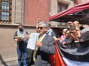 En una cara entregada en el Palacio Nacional, las organizaciones establecen que México no puede abandonar su tradicional política de defensa de los derechos a la soberanía, autodeterminación de los pueblos y las relaciones internacionales basadas en el respeto mutuo y a los derechos humanos de todas las personas. “Todos los gobiernos, hasta los más corruptos e impopulares cumplieron con el mandato Constitucional en esta materia. México rompió relaciones con la España Fascista, en 1939, con la Alemania Nazi en 1941, con la Sudáfrica racista y su inhumano Apartheid en los 1970s, con las Dictaduras militares de Chile, Uruguay, Paraguay, Argentina y Brasil, a partir de 1973. El 10 de noviembre de 1975, hace 50 años, México votó en favor de la Resolución 3379 de la Asamblea General de la ONU, que definió al Sionismo como una forma de racismo”. La carta, leída frente a los medios afuera del Palacio Nacional por Porfirio Martínez, presidente de Mexicanos Unidos, establece que hace unos días la Comisión Internacional Independiente de Investigación sobre los territorios palestinos ocupados, de la ONU, basada en investigaciones materiales y objetivas, declaro que en la Franja de Gaza, el gobierno de Israel está llevando a cabo un genocidio contra el pueblo palestino; con lo que se confirma lo que afirman los pueblos del mundo, a viva voz: no es una guerra, es genocidio. Usted reconoció este hecho y así lo declaró el 22 de septiembre del presente año. Por ello, afirmo en su lectura, la presidenta está obligada a cumplir con varias disposiciones contenidas en diversos instrumentos internacionales de derechos humanos como la Carta de Argel, los Convenios de Ginebra; el Estatuto de Roma, la Convención Internacional sobre la Represión y el Castigo del Crimen del Apartheid, así como la Convención para la Prevención y la Sanción del Delito de Genocidio, por encima de cualquier consideración de orden económico o político. “Ante los actos de discriminación racial; de limpieza étnica, despojo territorial y genocidio, no cabe neutralidad alguna; el mismo primer ministro de Israel y varios integrantes de su gabinete han manifestado expresamente, ante los medios de comunicación, desde hace muchos años, su determinación de limpiar étnicamente la Franja de Gaza y Cisjordania, desplazando o eliminando a los palestinos, mediante todos los medios militares a su alcance, incluso sugiriendo la utilización de armas nucleares”. Las organizaciones firmantes de esta carta son: Mexicanos Unidos Observatorio de Derechos Humanos de los Pueblos Alianza Latinoamericana por Palestina contra el Apartheid (ALPA) Comité Leonés de Solidaridad con Palestina (COLSOPAL) Centro para el Desarrollo y la Promoción de la Conciencia Crítica (CDPCC) Red de Resistencia y Rebeldía Tlalpan RASPAM Coalición Global Contra la Ocupación de Palestina Académicxs con Palestina contra el Genocidio Pacto Morelos por la Soberanía Alimentaria y Energética y los Derechos de las y los Trabajadores.