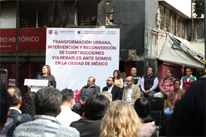 “El día de hoy con este programa también vamos a transitar de una estrategia reactiva, a una preventiva; esto significa un programa para prevenir. Se enfocará en edificios que se compruebe con estudios científicos y técnicos, su vulnerabilidad”, señaló. En la plaza Tlaxcoaque, frente a los edificios Fray Servando Teresa de Mier 172 y 174, colonia Centro y acompañada por funcionarios de su gabinete y representantes de los inmuebles, la Jefa de Gobierno aseguró que la implementación de este programa es el primer paso para garantizar una vivienda segura a las y los habitantes de viviendas en riesgo, así como propiciar zonas seguras en los espacios públicos. “La Ciudad de México cuenta con una normatividad de las más estrictas y avanzadas en materia de construcción, que nos permite levantar edificios más seguros, fuertes y preparados para enfrentar los retos de nuestro suelo y de nuestra historia”, aseguró Brugada Molina. Resaltó que este programa tiene como objetivo iniciar una ruta preventiva de atención integral a edificios vulnerables o de alto riesgo, lo que significa priorizar inmuebles en riesgo, que implica revisar criterios técnicos, exposición y vulnerabilidad estructural, además de establecer protocolos para la intervención de inmuebles con alto riesgo de colapso o con problemas que exacerban la vulnerabilidad estructural. Añadió que se tienen identificados seis edificios en Tlatelolco, cuyo estudio está por concluir; otro en Insurgentes Sur número 102, esquina con Niza, y en San Antonio Abad número 8. La Jefa de Gobierno mencionó que la puesta en marcha de este programa forma parte de las actividades para honrar a las víctimas de esos desastres naturales, ocurridos hace cuatro décadas y hace ocho años, lo que implica también el diseño de alternativas, soluciones integrales para definir el origen de los recursos necesarios encaminados a la atención de riesgos en los inmuebles. También, identificar los inmuebles que requieren reforzamiento, demolición, rehabilitación o reconstrucción para las que tienen mayor riesgo sísmico, partiendo de un análisis especial en cada una de las edificaciones. “Hoy se inicia la erradicación del riesgo y esto significa también reconstruir y levantar espacios dignos, seguros y habitables. Significa devolverle vida a esta plaza y a las calles de nuestra ciudad. Así que el objetivo de este programa es que estas edificaciones vulnerables se liberen de riesgo para o a favor de las comunidades y de la ciudad”, afirmó la mandataria capitalina. Por su parte, el secretario de Vivienda, Inti Muñoz Santini, señaló que los inmuebles ubicados en Fray Servando 172 y 174, edificaciones con 3 mil y 7 mil metros cuadrados de construcción respectivamente, resultaron dañadas tras el sismo de 1985 y permanecieron en condición de riesgo durante décadas.